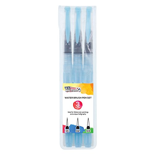 U.S. Art Supply 3-Piece Water Coloring Brush Pen Set of 3 (Sizes - 01 Fine, 02 Medium, 03 Broad) - Refillable, Watercolor, Calligraphy, Painting