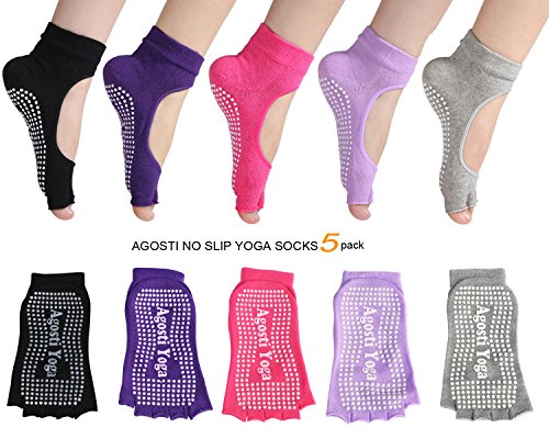 AGOSTI® 5 PACK NON SLIP SKID YOGA PILATES BARRE SOCKS WITH GRIPS FOR WOMEN MEN