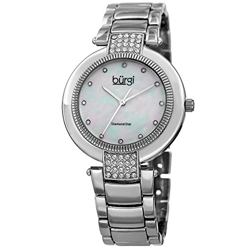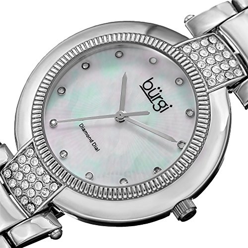 Burgi Women's Quartz Diamond & Swarovski Crystal Accented Mother-of-Pearl Dial Silver-Tone Bracelet Watch - BUR181SS