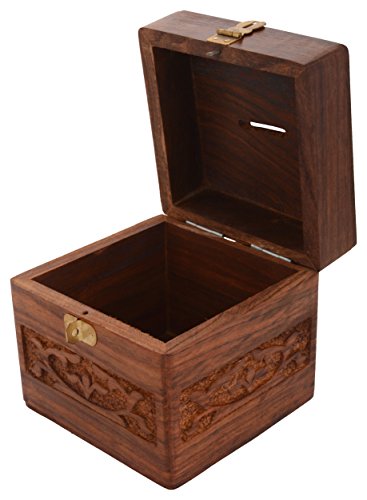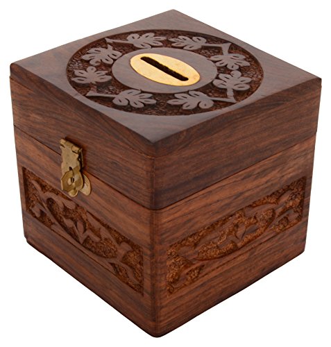 SAAGA Wooden Money Bank with Coin Slot for Kids and Adults / Handmade : 4x4x4 inches (LxBxH)