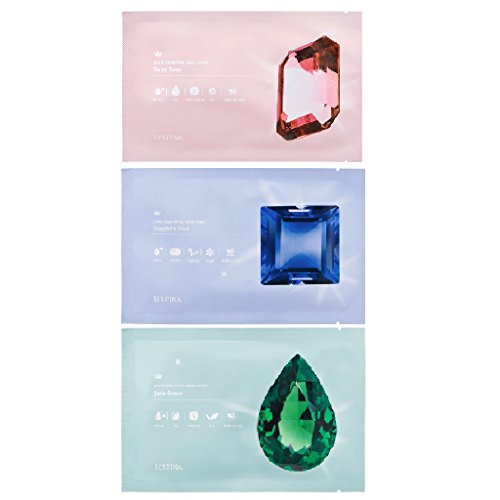-. Feature : Made in KOREA / Mask Sheets which contain ruby ingredients for the energy of skin, Vitamin C for the vitality of skin, and rose for the moisture of skin / Mask sheets which contain sapphire ingredients for the balance of oil and moisture, hyaluronic acid for the rich moisturizing effect, and narcissus for the skin moisture / Mask sheets which contain jade ingredients for the supply of mineral, Vitamin B5 for the soothing effect of skin, and green tea for the moisturizing effect / A set of 3 Mask sheets