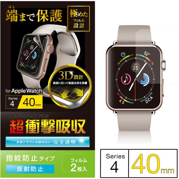 ●曲面に沿った3D設計で、Apple Watch Series 4 [40mm]を衝撃から守る衝撃吸収・反射防止タイプのフルカバーフィルム。