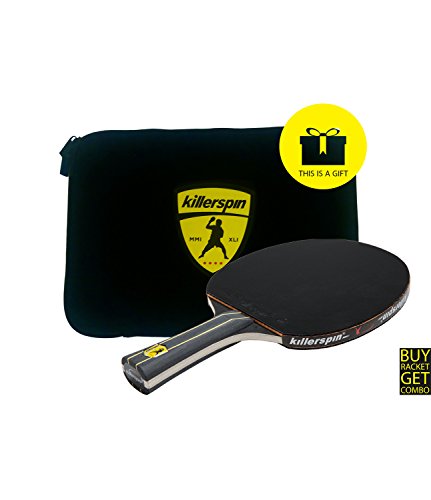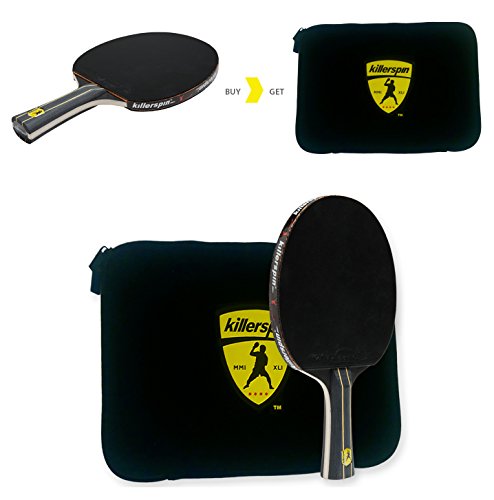 Killerspin JETBlack Table Tennis Paddle with Black Sleeve Racket Case, Black/Yellow