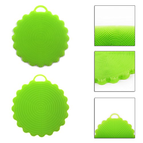 Food-grade Antibacterial Silicone Non Stick Dishwashing Dish Brush Sponge Towel Scrubber For Kitchen Wash Pot Pan Dish Bowl / Wash Fruit and Vegetable (Blue+Sky Blue)