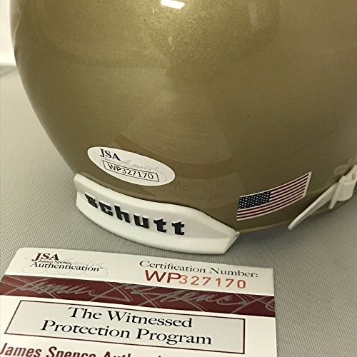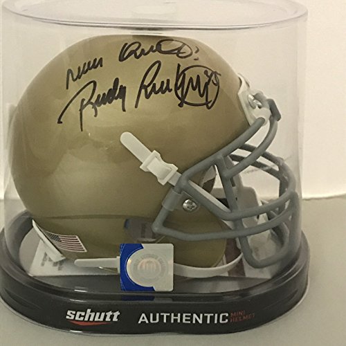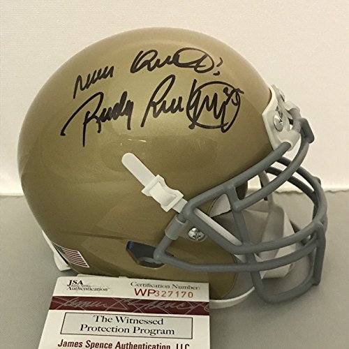 Autographed/Signed Rudy Ruettiger "Never Quit" Notre Dame Irish Football Mini Helmet JSA COA