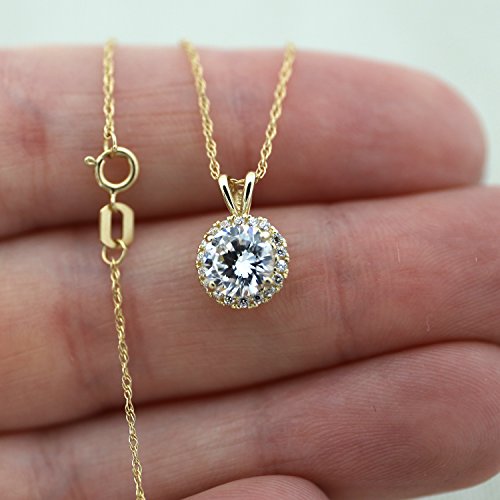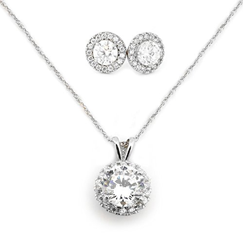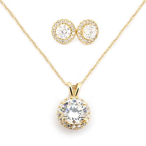 -. Title : 14k Yellow or White Gold Simulated Diamond CZ Cubic Zirconia Round Halo Necklace and Earrings Set
