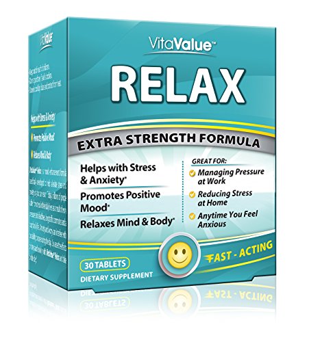 Product DescriptionVita Value Relax Extra Strength Fast Acting Formula Helps with Stress Anxiety While Promoting Positive Mood0
