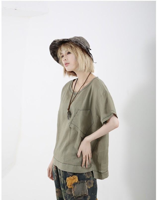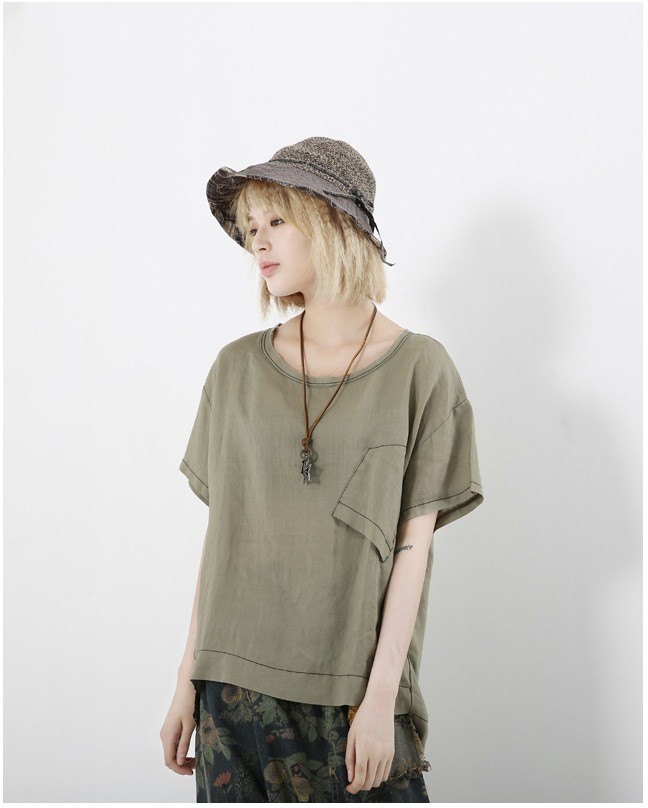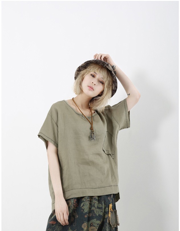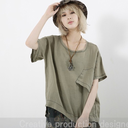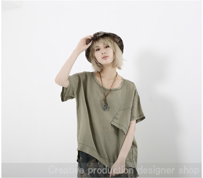 商品名:Tシャツ レディース トップス 無地 半袖 個性的 リネン混 夏 2018 モード系 個性的 40代 ファッション