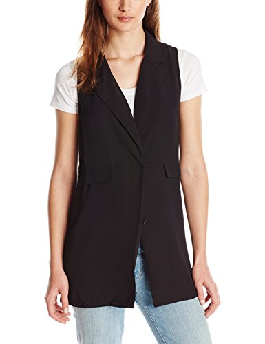 Single-breasted layering vest with notched collar and chiffon panel at back