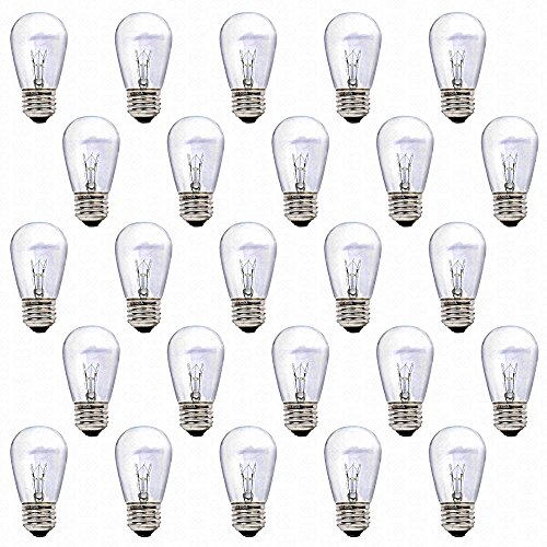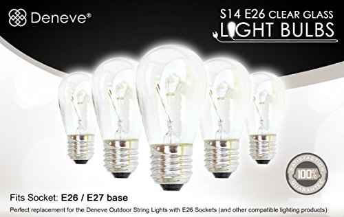 S14 Bulbs by Deneve, 11 Watts, Clear Glass S14 Incandescent Light Bulbs for E26, E27 Sockets, 25 Pack