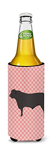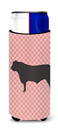 Caroline's Treasures BB7828MUK Black Angus Cow Pink Check Decorative Hugger, Slim Can, Multicolor