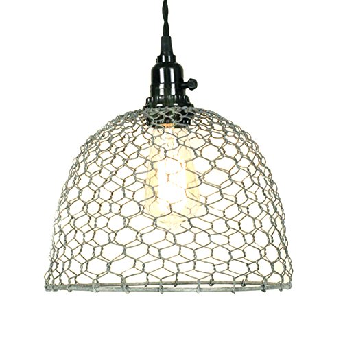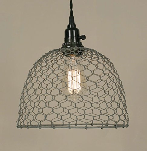 Primitive Chicken Wire Dome Pendant Light in Barn Roof Finish