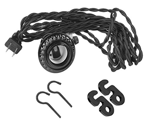 Includes 15 1/2 foot cloth-covered lamp cord with switched socket, two finished ceiling hooks, two cord clamps for adjusting the height of the lamp and easy-to-follow instructions.
