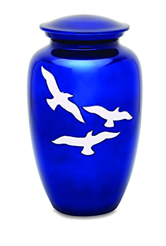 Urnsdirect2U 7528-10 Bright Blue with Birds Adult Cremation Urn