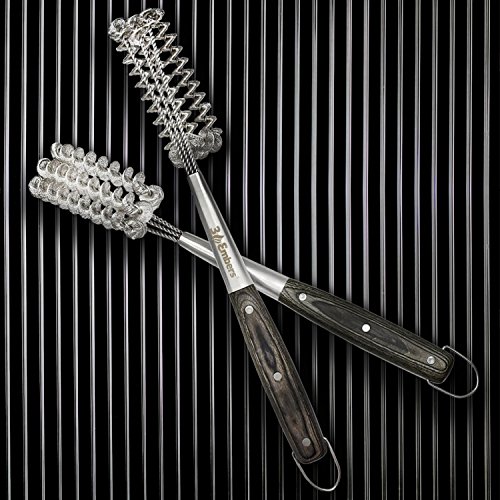 3 Embers Stainless Steel Grill Cleaning Brush with Pakkawood Handle