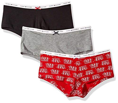 Tommy Hilfiger Women's 3pk Classic Cotton Logoband Boyshort, FA LA LA LA Tango Red and Black and Heather Grey, S