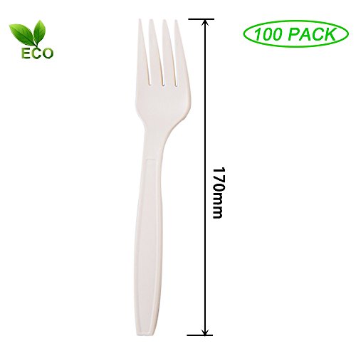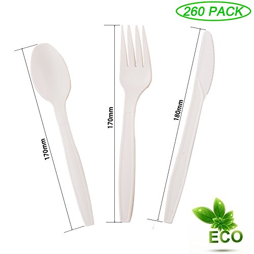Benail Compostable / Biodegradable Durable Cutlery Eco-Friendly GO GREEN 100 Forks 100 Spoons 60 Knives Made from Cornstarch