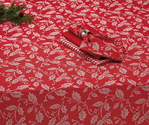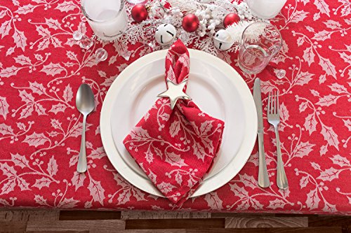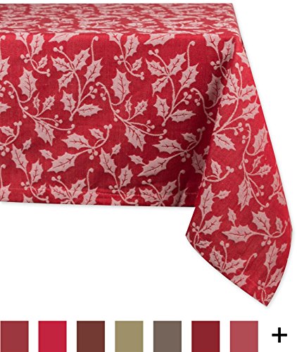 DII 100% Cotton, Machine Washable, Dinner and Holiday Tablecloth 60x104", Holly Flourish, Seats 8 to 10 People