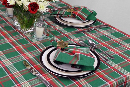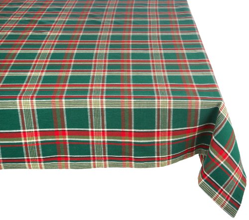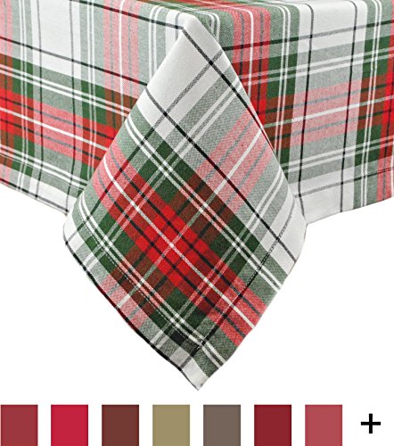 DII 100% Cotton, Machine Washable, Dinner and Holiday Tablecloth 60 x 104", Tartan Holly Plaid, Seats 8 to 10 People