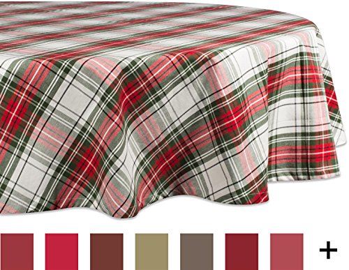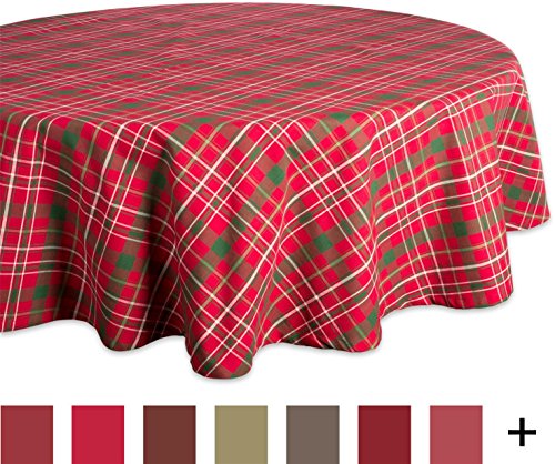 DII 70" Round Cotton Tablecloth, Holiday Plaid - Perfect for Dinner Parties, Christmas, Holidays, or Everyday use