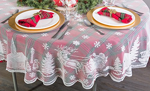 DII Machine Washable, Dinner and Holiday Tablecloth 60" Round, Holly Jolly Plaid, Seats 2 to 4 people