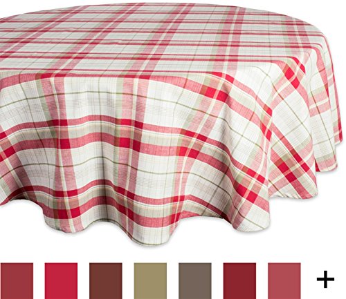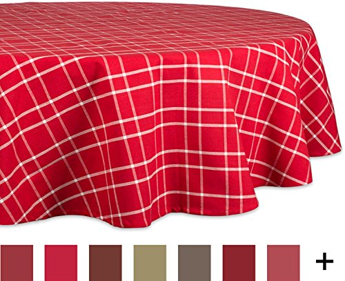 DII 70" Round Cotton Tablecloth, Berry Plaid Red - Perfect for Fall, Thanksgiving, Farmhouse Décor, Dinner Parties, Christmas, Picnics & Potlucks or Everyday Use