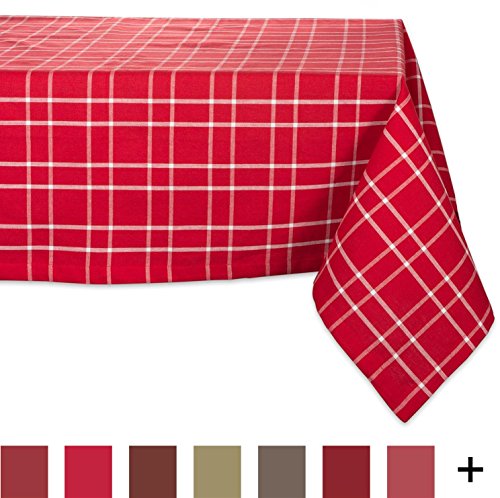 DII 60x104" Rectangular Cotton Tablecloth, Tango Red Plaid - Perfect for Dinner Parties, Christmas, Holidays, or Everyday use