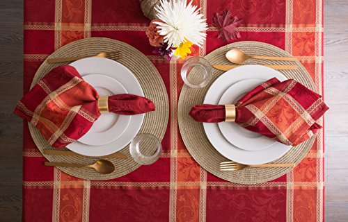DII 100% Cotton, Machine Washable, Dinner and Holiday Tablecloth 70", Tango Red Plaid, Seats 4 to 6 People