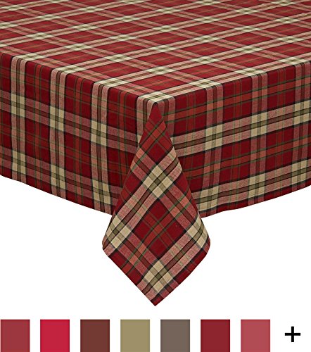 DII 60x104" Rectangular Cotton Tablecloth, Berry Plaid Red - Perfect for Fall, Thanksgiving, Farmhouse Décor, Dinner Parties, Christmas, Picnics & Potlucks or Everyday Use