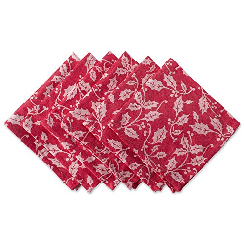 DII Oversized 20x20" Cotton Napkins, Pack of 6, Holly Flourish - Perfect for Dinner Parties, Christmas, Holidays, or Everyday use