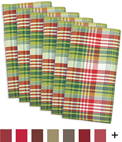 DII Oversized 20x20" Cotton Napkin, Pack of 6, Holly Berry Plaid Red - Perfect for Fall, Thanksgiving, Picnics & Potlucks, Christmas, Dinner Parties or Everyday Use