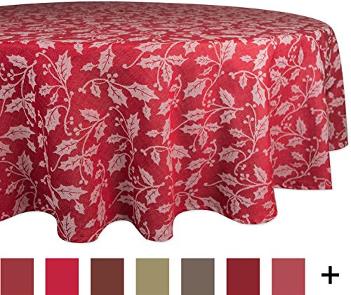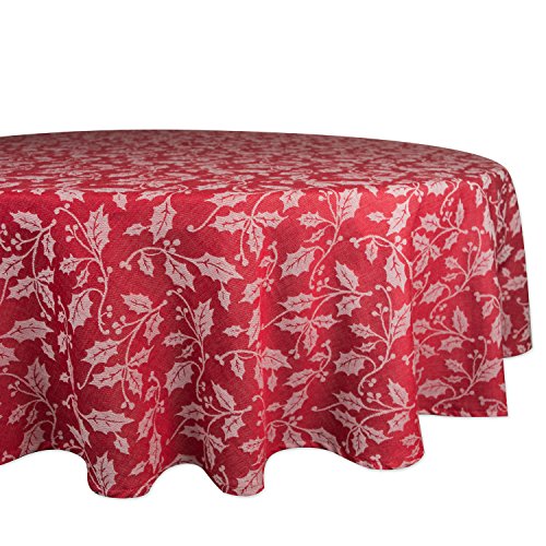 DII 70" Round Cotton Tablecloth, Holly Flourish - Perfect for Dinner Parties, Christmas, Holidays, or Everyday use