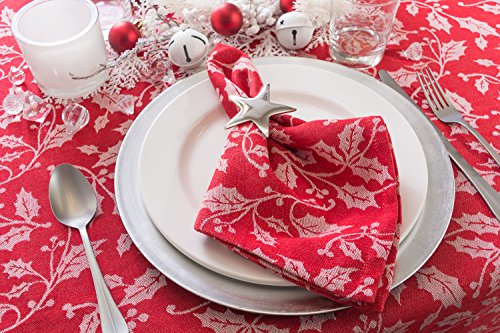 DII 52x52" Square Cotton Tablecloth, Holly Flourish - Perfect for Dinner Parties, Christmas, Holidays, or Everyday use