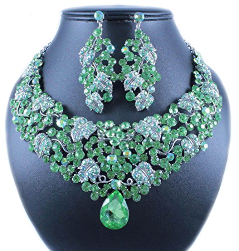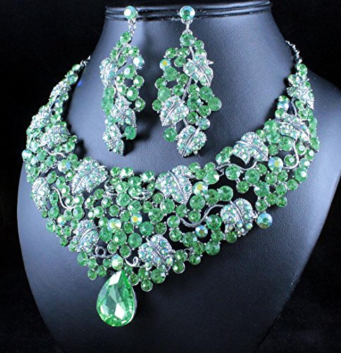 -. Binding : Jewelry -. Brand : Janefashions -. Department : womens -. Feature : Simply stunning! You are looking at breathtaking grape vine necklace set. Sparkling first class Green and AB Green Genuine Austrian Rhinestones are set on beautiful shiny Silver Tone metal. This set shines a lot! It is perfect for any special occasions. Thanks for looking! / Size: Necklace is approx. 16 inches Long adjustable to 19 inches Long, center section is 2-3/4 inches Height, with lobster clasp. Earrings are for pierced ears, approx. 2-5/8 inches Long x 1-3/8 inches Wide. / Condition: Brand New / Janefashions is a US trademark and seller Janefashions is its ONLY owner. We will pursue legal action against trademark infringement in case of UNAUTHORIZED sale or resale. -. Label : Janefashions -. Manufacturer : Janefashions -. Model : N1706M -. MPN : N1706M -. PartNumber : N1706M -. ProductGroup : Jewelry -. ProductTypeName : FASHIONOTHER -. Publisher : Janefashions -. Studio : Janefashions -. Title : Janefashions GRAPE VINE GREEN AUSTRIAN RHINESTONE BIB NECKLACE EARRINGS SET BRIDAL N1628G