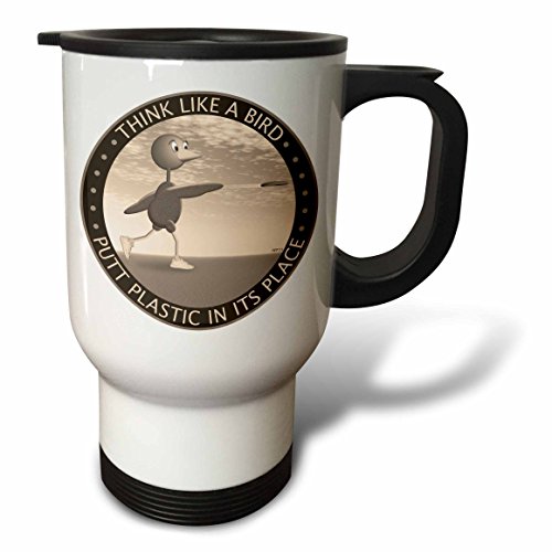 3dRose Think Like a Bird - Brown Bird Disc Golfer Putting a Shot - Travel Mug, 14oz., Stainless Steel (tm_174245_1)