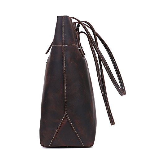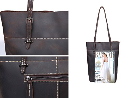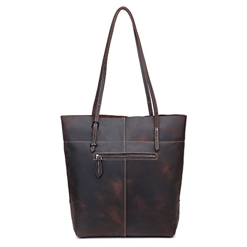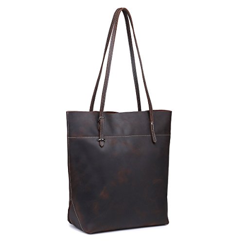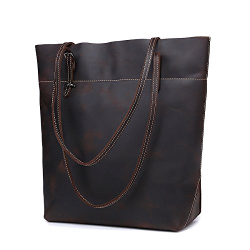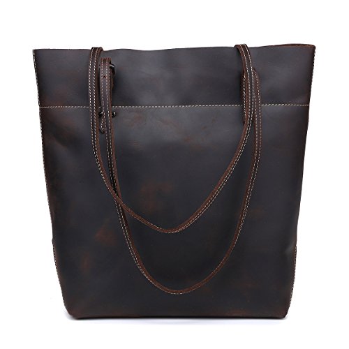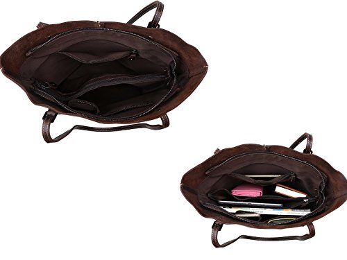- LARGE CAPACITY: Fantastic leather tote that can hold books, 14" inch laptop, wallet, IPAD, umbrella, cosmetic,clothes and other daily things.Roomy and portable,definitely a good choice to use as work tote, Student tote or everyday handbag. Retro London Style