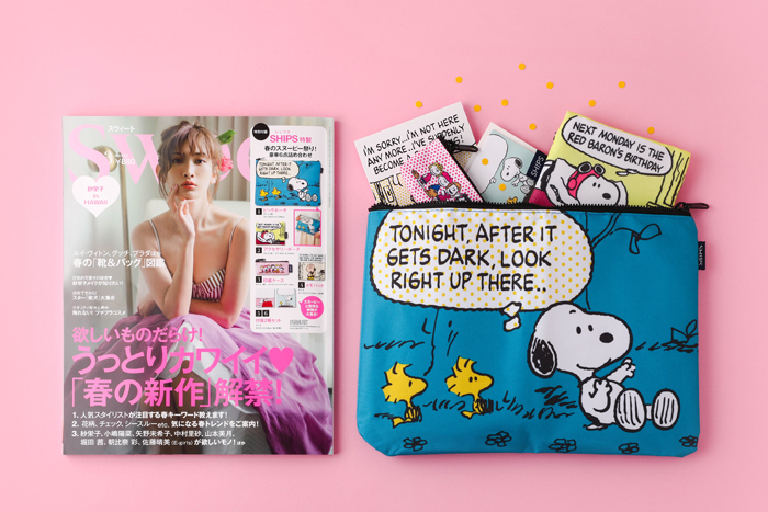 일본의 패션잡지 SWEET 의 봄 느낌 가득한 화보들과 귀여운 스누피 5종세트를 부록으로 함께 만나보세요.