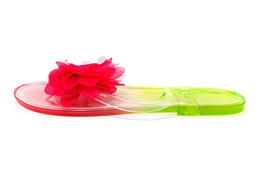 Nufoot Lime and Pink Flip Flops with Pink Blossom