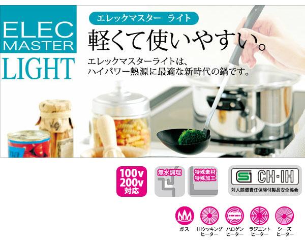 | エレックマスターライトはIHクッキングヒーター、ハロゲンヒーター、ラジエントヒーター等の電気調理器に合わせて造られた鍋です。これらの調理器は鍋の底部から集中的に加熱しますので、底部には十分な厚さが不可欠です。熱効率、耐食性に優れた特殊ステンレスNSSC180を使用すると共に鍋の底面と側面最下部のみを厚くする特殊加工を施しておりますので熱変形を防ぎベストな調理が可能です。 |