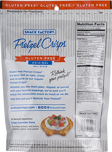 Snack Factory Gluten Free Pretzel Crisps, Original, 5 Ounce (Pack of 8)