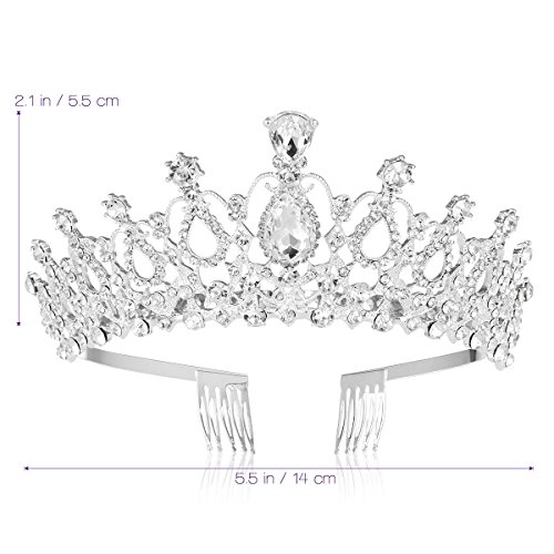 - Brand: FRCOLOR - Color: Silver - Material: Alloy and rhinestone - Size: 13 x 13 x 6 cm/ 5.1 x 5.1 x 2.3 inch (L x W x H) - Selected alloy material with electroplating finishing. Anti- rust, nickel free and anti-allergic for safe wearing. - Perfect accessory for a little girl's birthday celebration party. A great gift for your daughters and kids of your friends or relatives. - Distinctive baroque tiara with smooth shining surface, charming and exquisite crystal rhinestones with royal glory, which is sure to make you look like a princess. - Ergonomic Construction: Side combs at each end of the tiara for securely fixation with hair. - One size fits most. Free size design fits most girls and ladies. - Party Essential: Perfect for your prom party, dancing party, engagement, wedding or any other special soiree and formal party. Package Including 1 x FRCOLOR Bridal Tiara Crystal Rhinestones Tiara Crown with Comb Wedding Birdal Pageant Birthday Princess Tiara Headband 1 x FRCOLOR Package 0