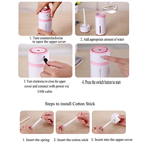 - √4-in-1 function: Purifying the air, improving the air humidity, moisturizing skin and colorful night lights displaying