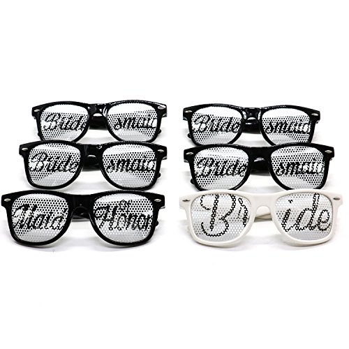 HUELE 6 Pairs set Bridal Bachelorette Wedding Party Sunglasses , Bride and Bridesmaid Sunglasses Party Favors