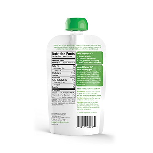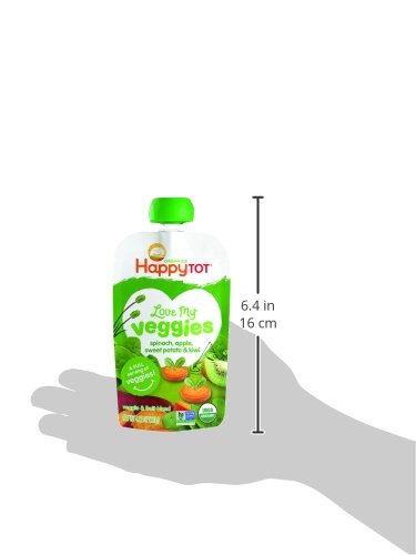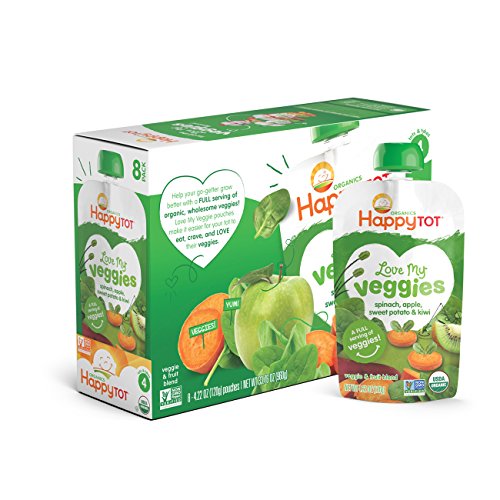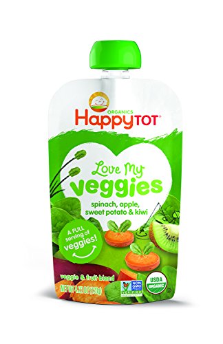 Happy Tot Organic Stage 4 Baby Food, Love My Veggies, Spinach, Apple, Sweet Potato & Kiwi, 4.22 Ounce (Pack of 16)