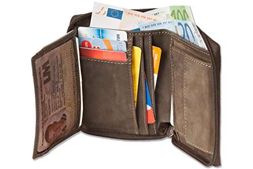 -. Title : Woodland - Universalbörse mit umlaufenden Reißverschluss aus weichem, naturbelassenem Büffelleder