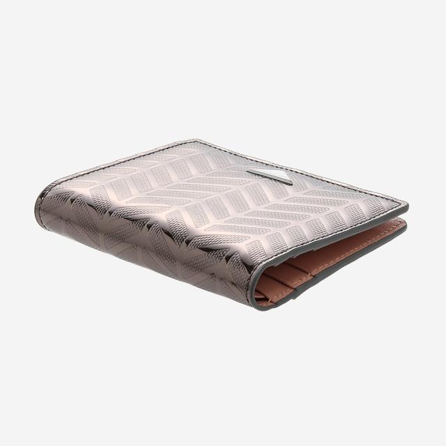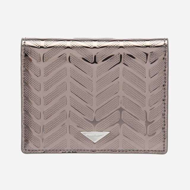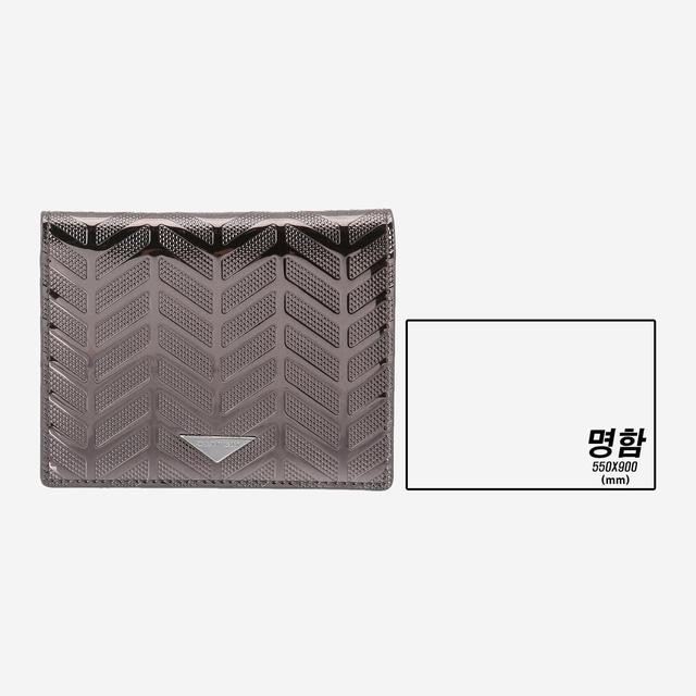 그레이 매탈릭 컬러로 반짝거리는 코팅 위에 로젤라 프리즘 패턴이 적용되어 독특한 반지갑입니다. 역삼각형 질 스튜어트 로고가 포인트로 멋스럽습니다.
