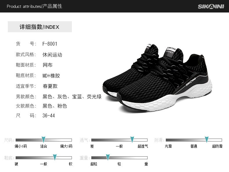 Features: ventilated mesh, cushioning soles, soft and easy to bend, light and comfortable, breathable insoles.