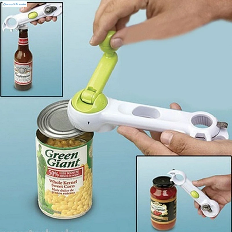 Kitchen Can Do?is the one tool you need to open virtually anything in your kitchen! Features six different built-in cutting, gripping and twisting tools to let you easily open cans, bottles and jars of all sizes and shapes. Also can be used to lift tabs, pry tins, break seals, twist caps and pop tops in a flash. Leaves no sharp edges; safe, comfortable and easy to use.u0026nbsp;