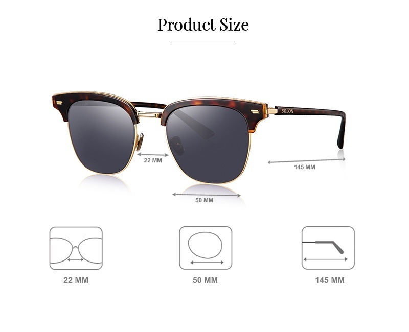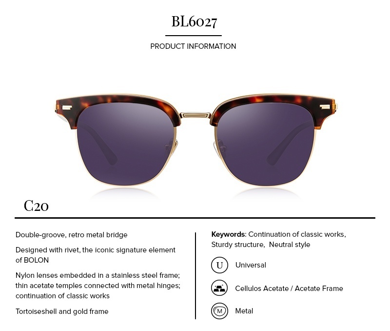 Designed with rivet, the iconic signature element of BOLON, these sunglasses have nylon lenses embedded in a stainless steel TAWNY frame. The double-groove metal bridge and the thin acetate temples are a continuation of classic works. Feature a BLACK color HD POLARIZED and UV 400 protection lenses to ensure a maximum comfort. Comes with a free premium black leather protective case & a branded cleaning cloth.
