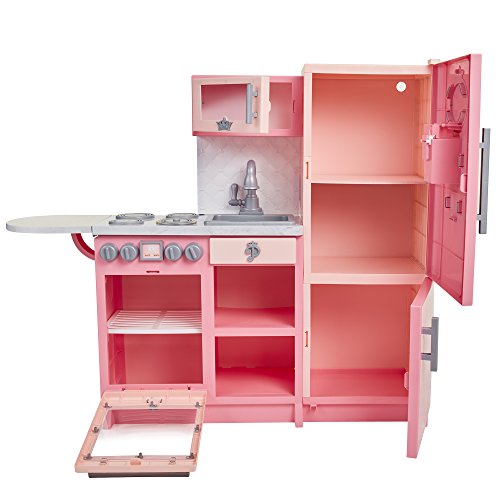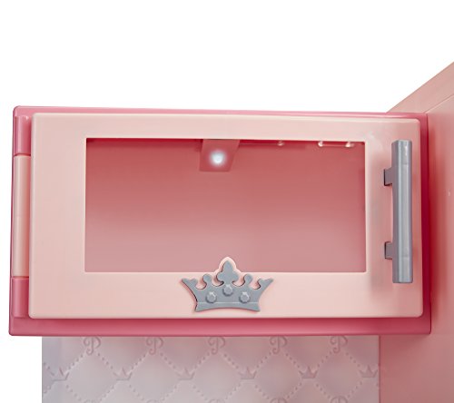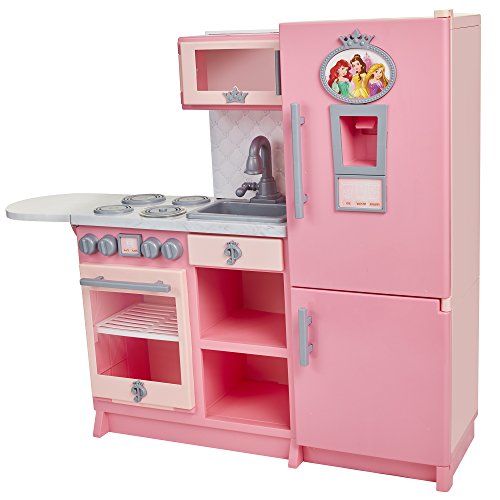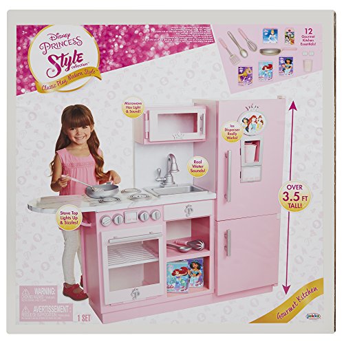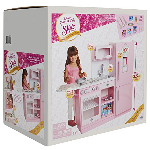 -. Feature : Disney Princess Style Collection, is meant for every modern girl with big goals and great style / The Gourmet Kitchen comes complete with basic cooking essentials / Light up microwave, and refrigerator door that makes ice and water sounds / Includes: 1 whisk, 1 frying pan, 1 spatula, 1 spoon, 2 ice cubes, 1 cup, and 5 play food boxes / Requires 3 AA batteries(not included). Adult assembly required. Recommended Ages 3+ / Bon Appetite!